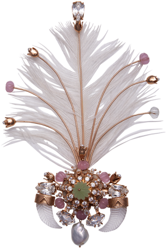 Feather brooches are exquisite accessories crafted from feathers, adding a touch of elegance and whimsy to clothing, hats, or bags.